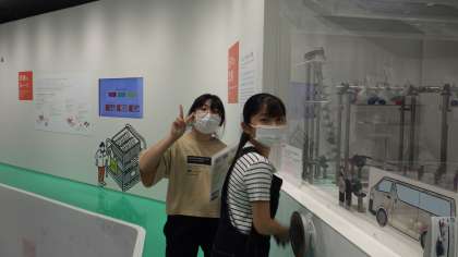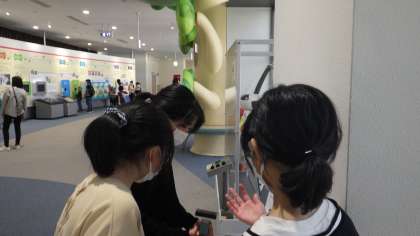 トヨタ会館では、自動車のいろいろな仕組みについて復習したり、新しい車作りに対する取り組みを知ったりしました。体験ブースなどもあり、活動しながら学ぶことができました。