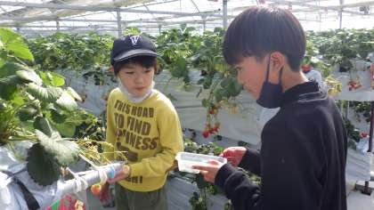 いよいよ待ちに待ったいちご狩りスタートです。みんながたくさんのいちごを食べる姿を見て驚きました。3種類のいちごは、どれもおいしかったですね。