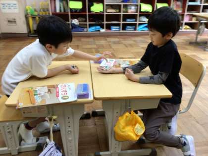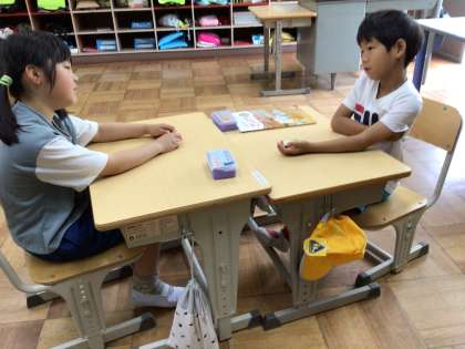 ブロックが5個あります。こっちの手には、2個あります?こっちの手には何個あるでしょう?