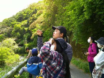 日影ダムコースでは、イワツバメやカルガモの様子を見ることができました。また、ヘビをくわえたサシバを間近で見ることができ、子どもたちは大盛り上がりでした。