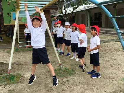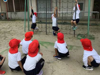鉄棒はもちろん、うんていや登り棒にも挑戦しました。一生懸命がんばる友達を応援する姿が、すてきでした。