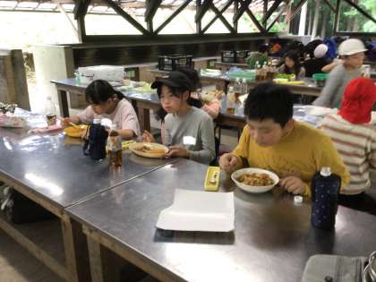 みんなで協力してつくった焼きそば、みんなで美味しくいただきました。