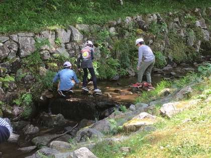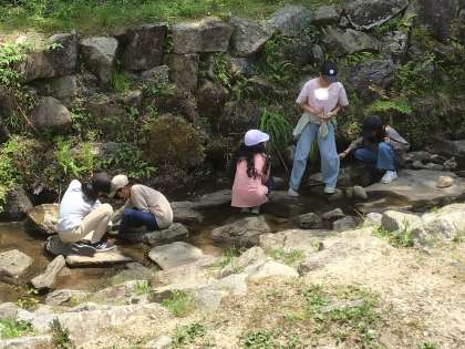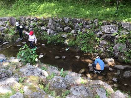 子どもたちの頑張りで、スケジュールに余裕ができました。そこで、自然の家の横にある沢で遊びました。