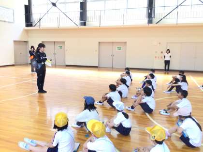 WBGTの値が少し高めだったので、避難訓練の振り返り活動は体育館で行いました。
