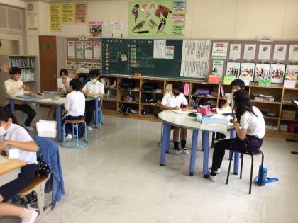 総合的な学習の授業では、営巣調査が終わりに近づき、話し合いに入っています。グループで話し合ったり、自分で考えたり、分からないことがあると悩みながらもみんなで考え、解決しようと前へ進んでいます。
