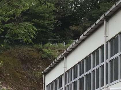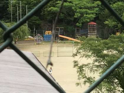 お題の通り、ヤッホーの丘から双眼鏡で職員室前の鳥(写真)を見る子どもたち。すぐに鳥の名前を答えていました。さすが滝っ子です。