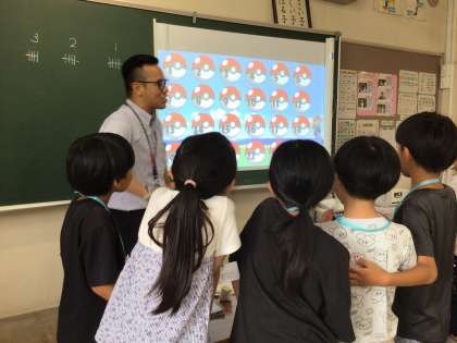 英語の授業で、ゲームをしました。出されたお題に英語で答えるゲームです。好きな食べ物や今の気分などを英語で答えることができました。得点を競い合ってペアで取り組み、楽しい時間でした。