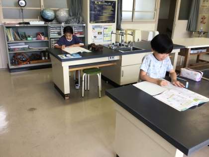 4年生は算数の授業で話し合いをしたり集中して問題を解いたりしています。今日は「小数」の学習のまとめをしました。テストに向けて復習問題を頑張っています。