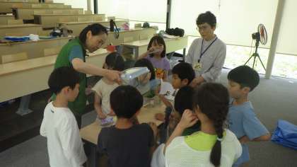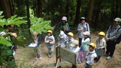 天候に恵まれ、屋外での散策活動を行うことができました。「いろいろ形の葉」「生きものがいたあと」などを見つけ、生きものビンゴを楽しみました。