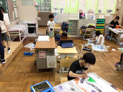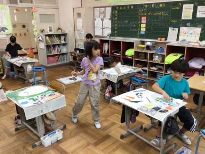 図工の時間に、愛鳥ポスターを描きました。鳥が大好きなことが伝わるように、大きく描くことができました。