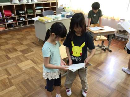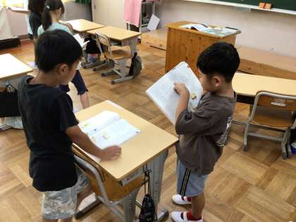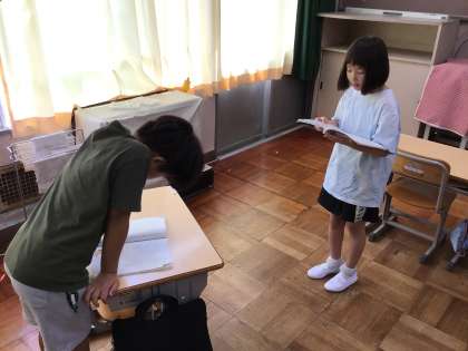 夏休み明けての初めての授業は国語でした。ペアを組んで、ゆっくりと声を合わせて詩を読みました。