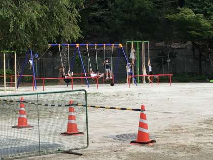ふれあいタイムに、新しい遊具で遊ぶ子どもたちの姿が見られました。ブランコやのぼり棒などで遊ぶ子どもたちは、とても楽しそうで、笑顔いっぱいでした。