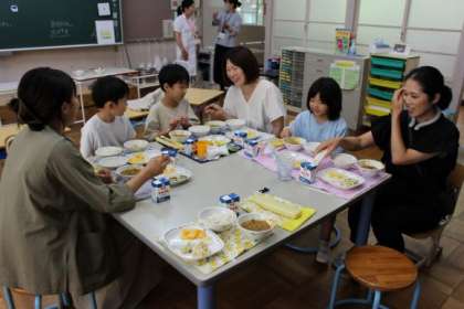 この日の給食は、保護者の方と一緒に楽しく食べました。