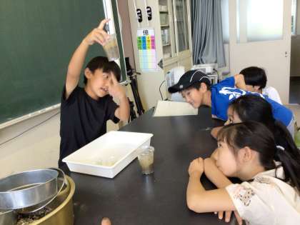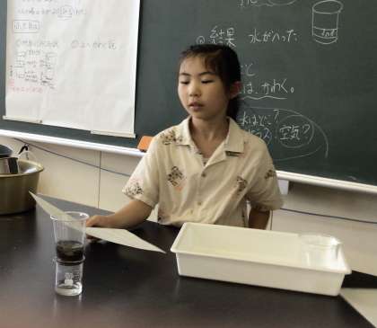 理科「運動場に降った雨水はどこへ行くのか?」について、子どもたち一人ひとりが考えた実験方法で自分の“説”を検証する実験を行いました。