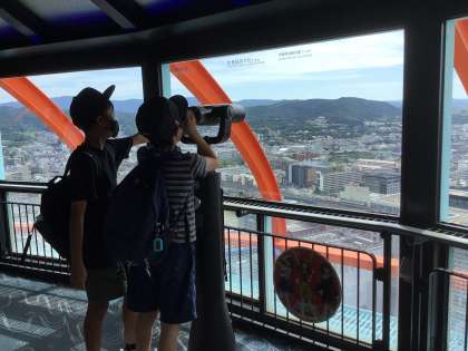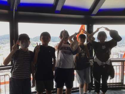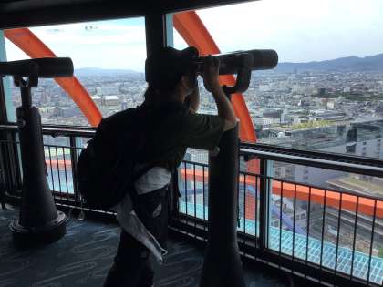京都タワーに行きました。展望室からは京都の街並みが一望でき、見学してきた清水寺も見ることができました。子どもたちは設置されている望遠鏡をのぞきながら、伏見稲荷など、京都の名所を探して楽しんでいました。