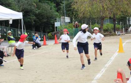 赤白リレーは、最後の赤白対決でした。どの子も一生懸命走る姿に感動しました。最後まで諦めず、全力で走った子どもたちに大きな拍手を送りたいです。