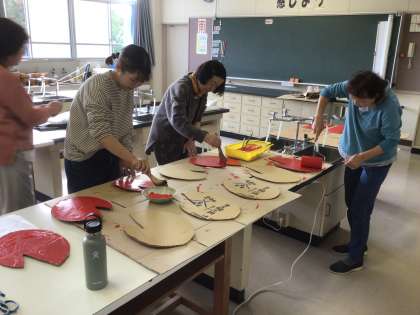 学芸会ボランティアの方々に、衣装や小道具を作っていただいています。初日は、低学年・中学年・高学年、それぞれの衣装が、次々にできあがっていきました。ありがとうございました。