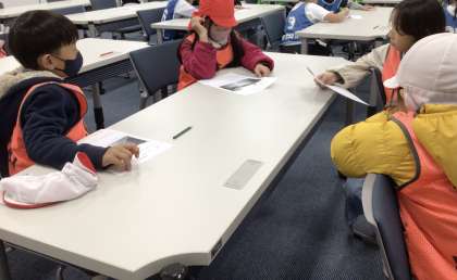 交通安全教室の後半は、安全に関するお話を聞きました。自転車の点検箇所「ブタはしゃべる」(ブレーキ、タイヤ、ハンドル、車体、ベル)について教えていただきました。安全に自転車に乗れるように、学んだことを覚えておけるといいなと思います。