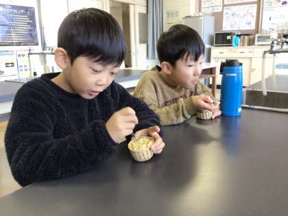 育てたさつまいもを使って、おいもパーティーを開きました。さつまいもチップスにさつまいもスティック、さつまいもマフィンを4人で協力して作りました。どれもとってもおいしくできあがりました。