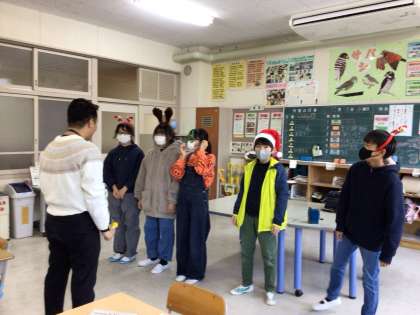 今年最後の外国語の授業は、クリスマス会です。英語クイズなどをして楽しみました。
