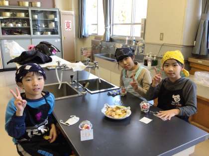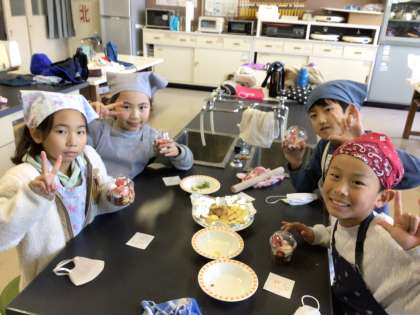 チームで協力して、クッキーやミニパフェを作ることができました。