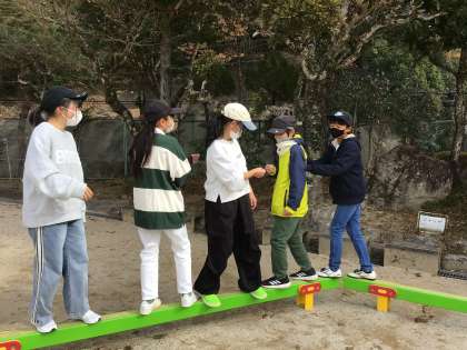 懐かしの平均台じゃんけんを真剣に勝負する6年生。勝負がつかず、ひたすらじゃんけんを繰り返していました。鬼ごっこも負けません。5人で仲良く遊んで楽しそうでした。