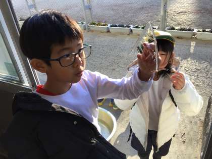登校すると、大きな氷ができていていました。寒い朝ですが、元気に登校できました。
