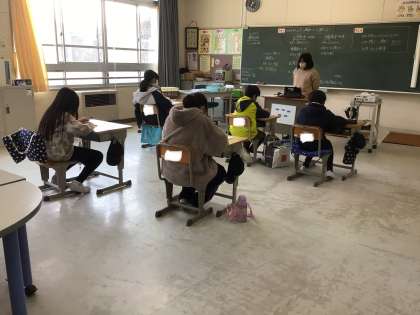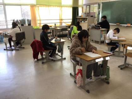 地鳴き検定のために、愛鳥委員がお昼の放送で、「ニィー ニィー ニィーは、ヤマガラ」のように、地鳴きの覚え方を教えてくれました。検定当日は、みんな耳をすませて鳴き声を聞き分けていました。