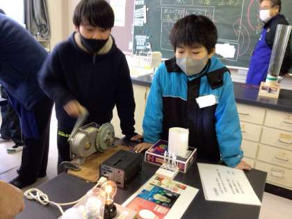 最後は、発電体験です。電気自動車体験、電気の力で風を起こす体験など、4つのブースに分かれて、体験をしました。発電の大変さ、電気の便利さなど体験を通して学ぶことができました。