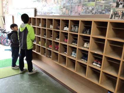 掃除の時間、高学年の子が「残りの5分でできること考えてやってみよう」と提案し、下駄箱の靴をピッタリ揃えてくれていました。並べ終えた靴箱はとっても綺麗で思わず、写真を撮ってしまいました。いつも綺麗にしてくれてありがとう。これからもよろしくね。