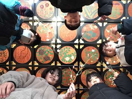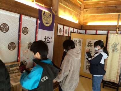 校外学習に行ってきました。まずは、松平東照宮です。宮司さんや松平郷ふるさと委員会の方のお話を聞きました。天井画もとても素晴らしかったです。