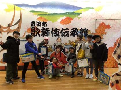 小原和紙のふるさとへ行った後は、小原交流館に行きました。小原には、和紙だけではなく歌舞伎の伝統があります。歌舞伎の特徴や歴史を学ぶことができました。最後に、小原交流館の敷地内にある公園で鬼ごっこをして遊びました。