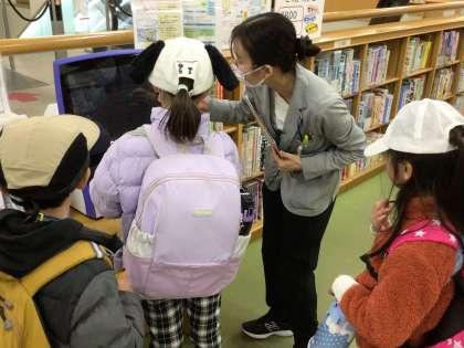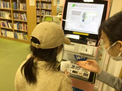 豊田市中央図書館で、本の貸し出しを行いました。検索機や、無人貸し出し機を利用しました。