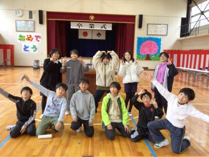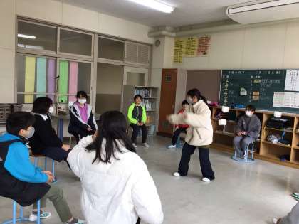 5年生とのお別れ会をしました。運動場が雨のため使えなかったので、急遽予定を変更しました。何でもバスケットとだるまさんの一日をして楽しみました。