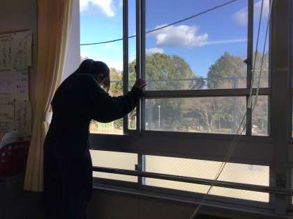 各教室の窓の桟を掃除しました。普段なかなか掃除ができないところを中心に一生懸命取り組みました。