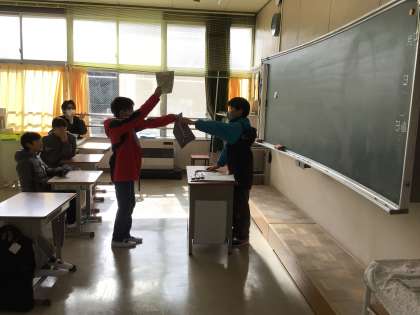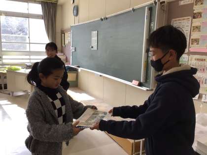 卒業プレゼントが完成したので、各教室へ渡しに行きました。使ってくれるとうれしいですね。