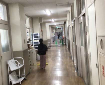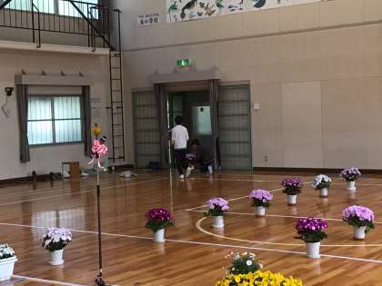 廊下やテラスを掃除し、体育館に机や椅子を並べたり、1年生教室に飾り付けをしたりしました。