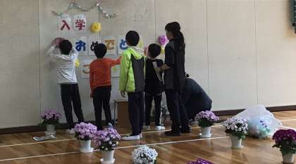 明日の入学式・始業式に向け、高学年の子たちが準備をしました。