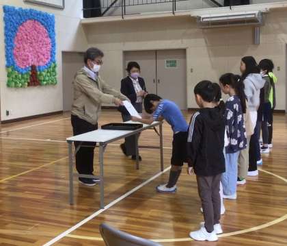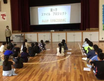その後、校長先生のお話を聞きました。入学式・始業式でのお話に続き、「みんなが笑顔になるためにできることを考えよう」との呼びかけに真剣に聞いていました。
