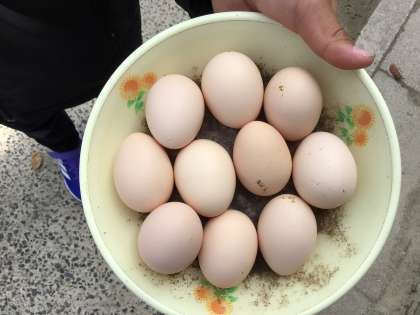 掃除が終わると、子どもたちが採れたての卵をもってくれるのですが、今日はなんと10個もありました。