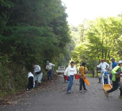 この活動は、昭和55年に当時5年生の子どもたちの発案で始まったそうです。今年も、きれいな二畳ケ滝を保ちたいと、5・6年生で掃除をしました。
