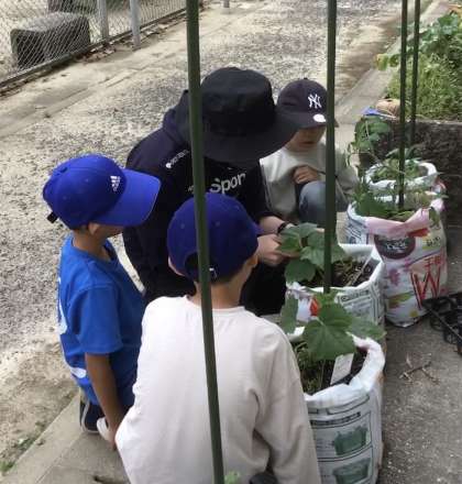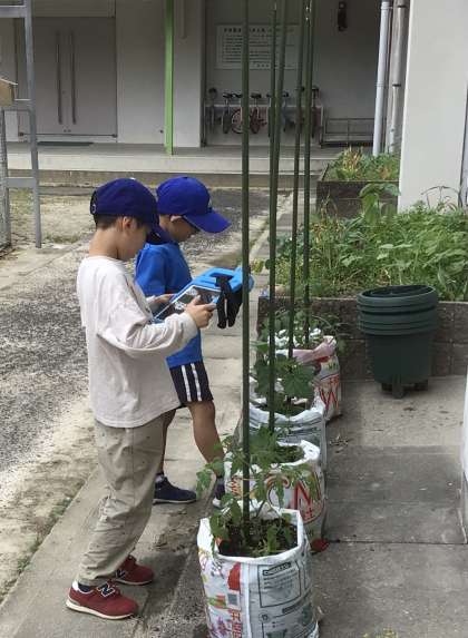2年生が生活科で野菜を育ています。