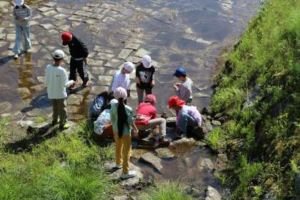 五平餅を食べた後は 少し時間があったので、 沢であそびました。