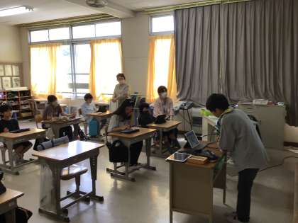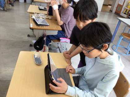 ICT支援員さんにきていただき、スクラッチの学習をました。どんな命令を出したら、どう動くかな?