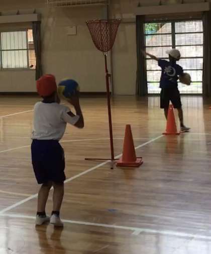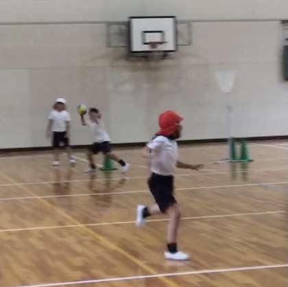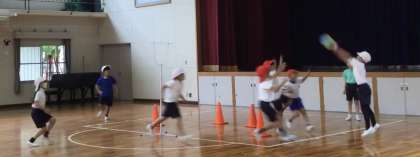 3・4年生が体育でゴール型ゲーム「セストボール」の学習をしました。
