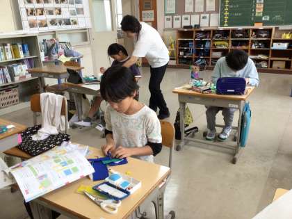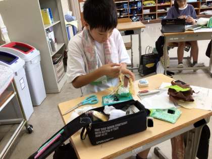 学習した玉結びや玉止めを使って、フェルトで小物を作りました。