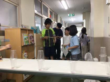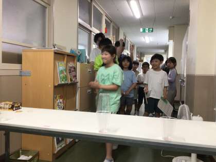 図書委員の子どもたちが割り箸鉄炮や的を準備してくれました。
