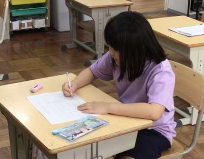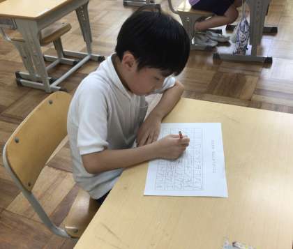五十音を練習した後、かたかなで書く言葉を探しました。久しぶりのかたかなでしたが、楽しく取り組んでいました。