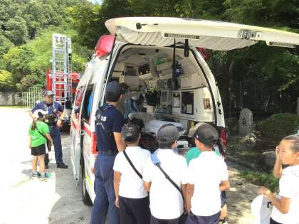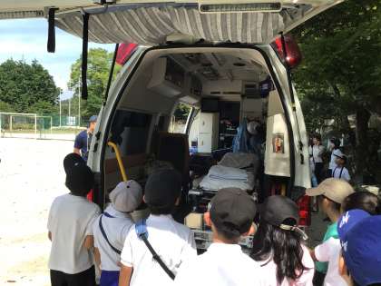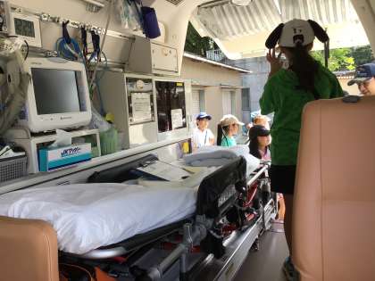 消防車の見学後は救急車でした。たくさんの機械があり、人の命を救うための準備が万端でした。