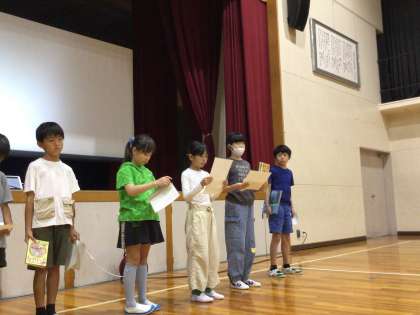 図書委員会からは、秋の読書週間に向け、委員さんお薦めの本を紹介してくれました。いろいろな分野の本とお気に入りに場面を聞き、読書への気持ちが高まったようです。